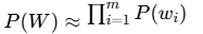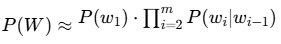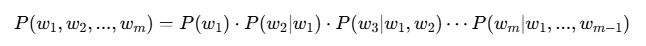 其中,P(wk∣w1,...,wk−1)表示在已知前面所有词的情况下,出现wk的概率。